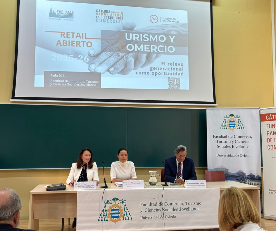 El día 1 de octubre de 2025 tuvo lugar la primera jornada del ciclo de Retail Abierto de la Cátedra FRA del curso 2025-2026 en la Facultad de Comercio, Turismo y Ciencias Sociales "Jovellanos", titulada "Turismo y Comercio. El relevo generacional como oportunidad".